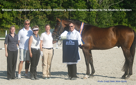 The Breed Show Sweepstakes were closely contested - and it was great to see the incredible young talent on the floor. Renowned breeder Kathy Hickerson won Colts/Geldings/Stalions with Harpo MG. Leading up to this Championship Final, the lovely colt MW Feinermark handily won the 2 year old class. Owned by local Catskill breeder Jen Vanover of Maplewood Farms. Jen and her team were thrilled with his 86.7% score from judges Janet Foy and William Solyntjes. There was some very good handling by some professionals like the Portuguese Phil Silva (the show after this he started wearing protective head gear, very sensible) and amateurs alike. Elizabeth Hotchkiss won out with her also Dutch horse Royal Dancer in the Fillies/Mares. Grand Champion here went to an Oldenburg though, the stallion Rocazino owned by Wie Studnitz Anderson. The German and Dutch bloodlines always seem to shine through. Having been a breeder of both myself, starting out with Hanoverians and then switching to Dutch, I must confess a certain bias as a reporter, particularly enjoy watching the young horses go!